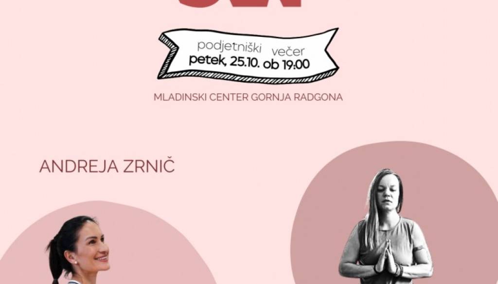 V sklopu mesečnih podjetniških večerov Sam svoj šef, na katerih spoznavamo lokalne podjetnike in njihove zgodbe, ter produkte in storitve, bomo tokrat predstavili osebno fitnes trenerko Andrejo Zrnič in Majo Srpak, učiteljica joge s svojo lastno trgovino in studiom.