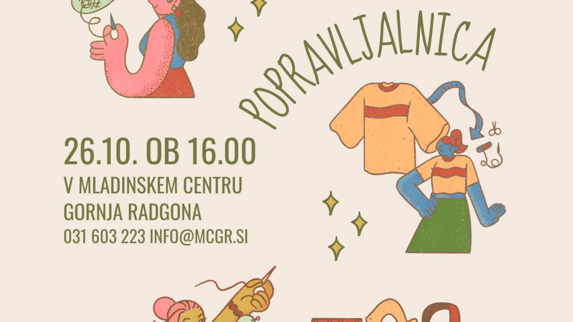 Mladinski center Gornja RadgonaVabimo vas, da vašo spomladansko in poletno garderobo osvežite na trajnosten in odgovoren način v Šivalnici Popravljalnici. Odprite omaro, prevetrite garderobo ter osvežite svoja stara oblačila na naši Šivalnici Popravljalnici.