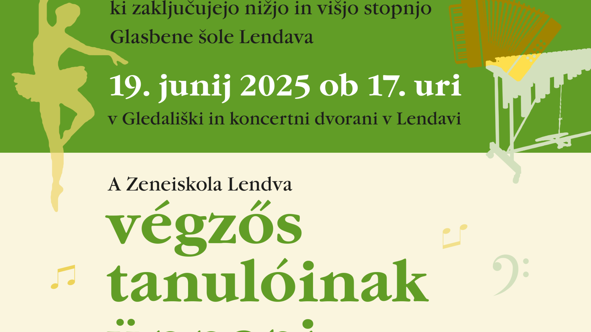 Gledališka in koncertna dvorana LendavaSlavnostni koncert učencev, ki zaključujejo nižjo in višjo stopnjo Glasbene šole Lendava (v šolskem letu 2024/2025)