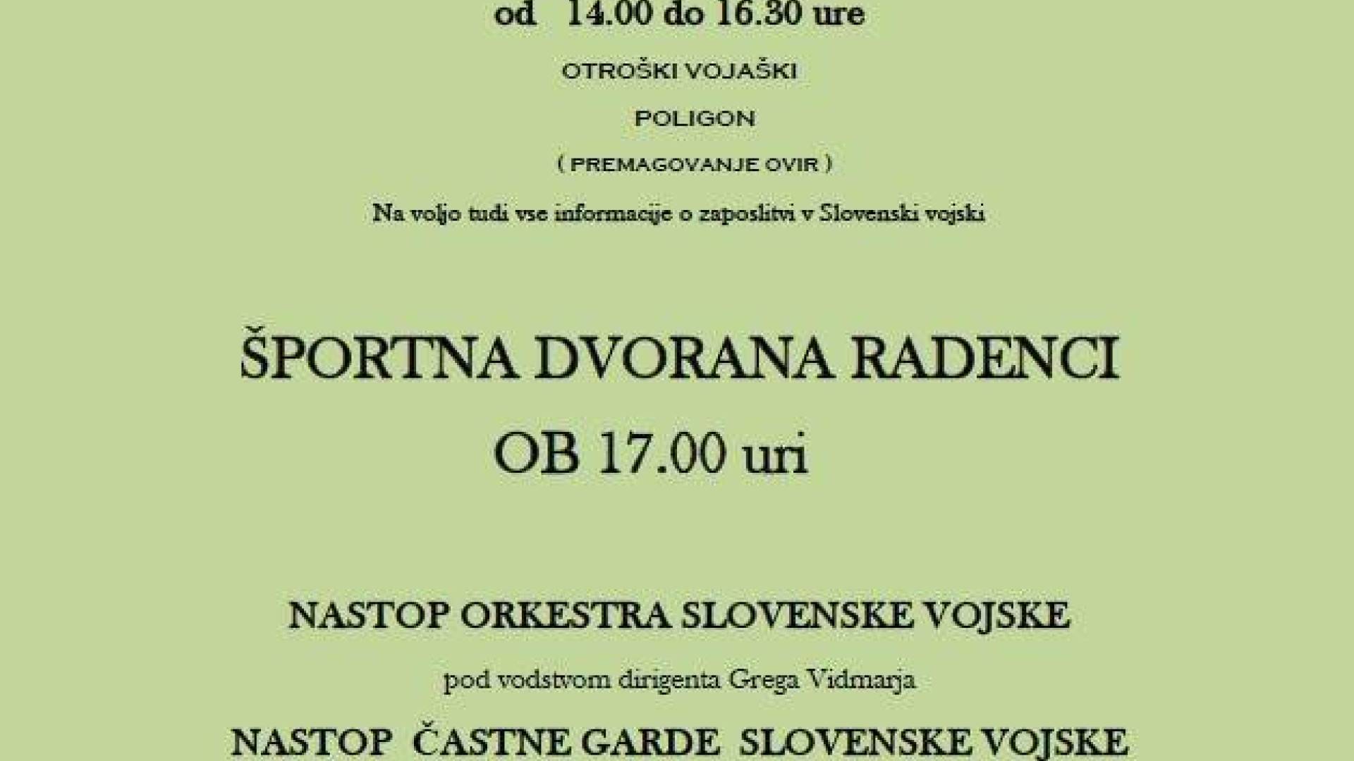 Športna dvorana Radenciod 14:00 do 16:30 ure - otroški vojaški poligon (premagovanje ovir) - Športna igrišča pri Športni dvorani Radenci