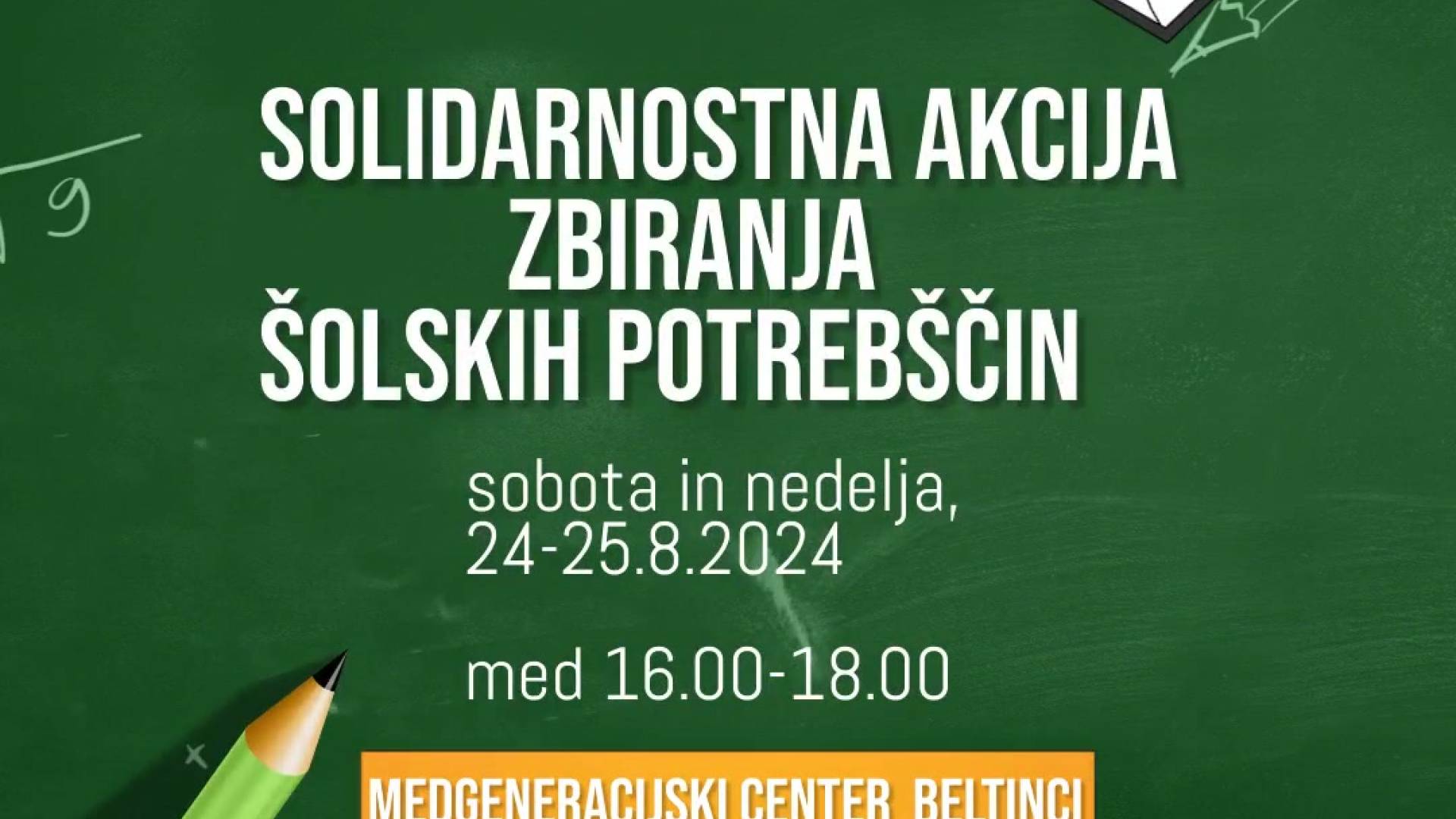 V soboto in nedeljo (24-25. avgusta 2024), med 16.00 in 18.00 uro, bomo v prostorih Medgeneracijskega centra Beltinci, Ulica Štefana Kovača 1, (preko pošte), zbirali šolske potrebščine za socialno šibkejše družine iz lokalnega okolja.