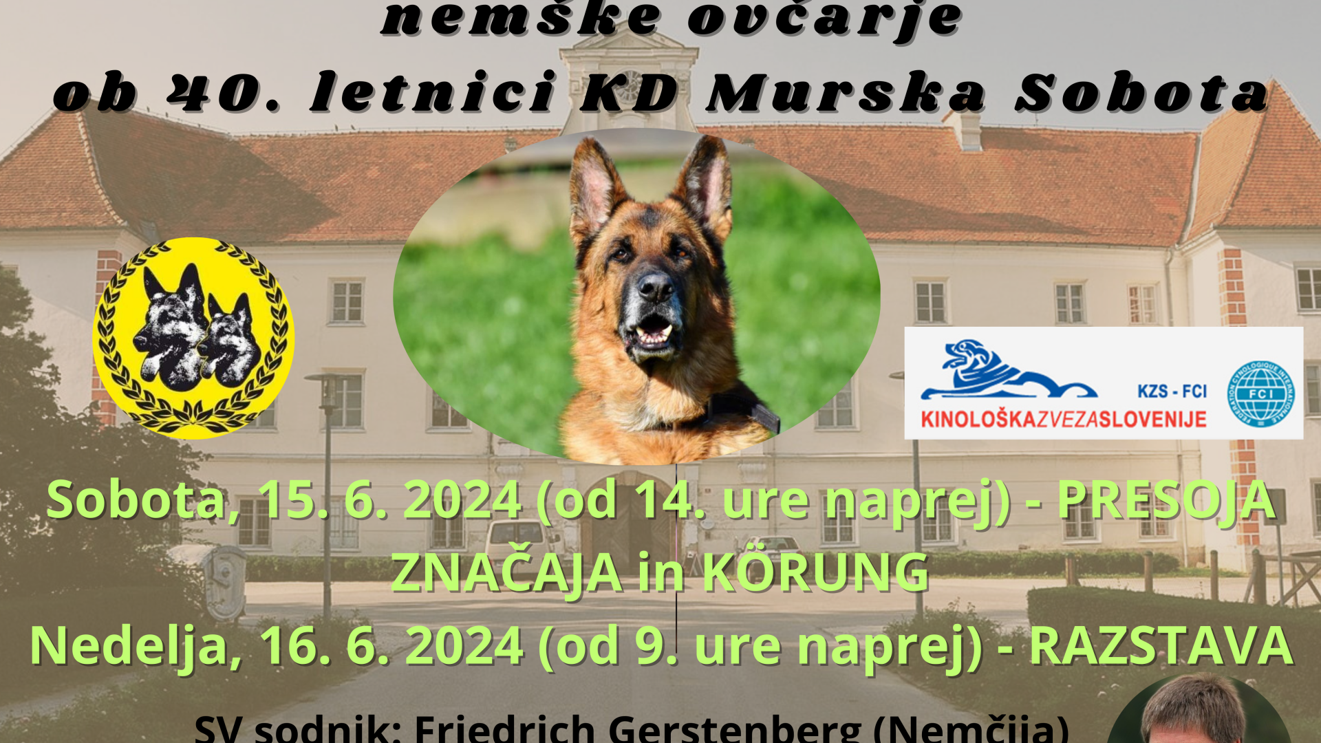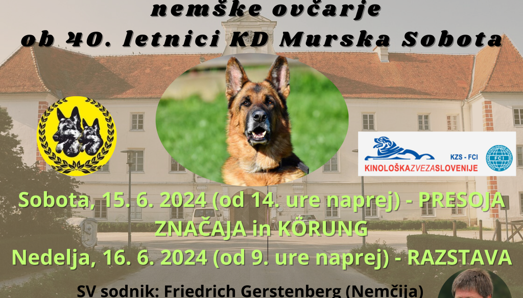 Poligon Kinološkega društva Murska SobotaVabljeni na Specialno razstavo za nemške ovčarje, ki jo organizira Kinološko društvo Murska Sobota in sicer 15. 6. in 16. 6. 2024 na poligonu KD MS.