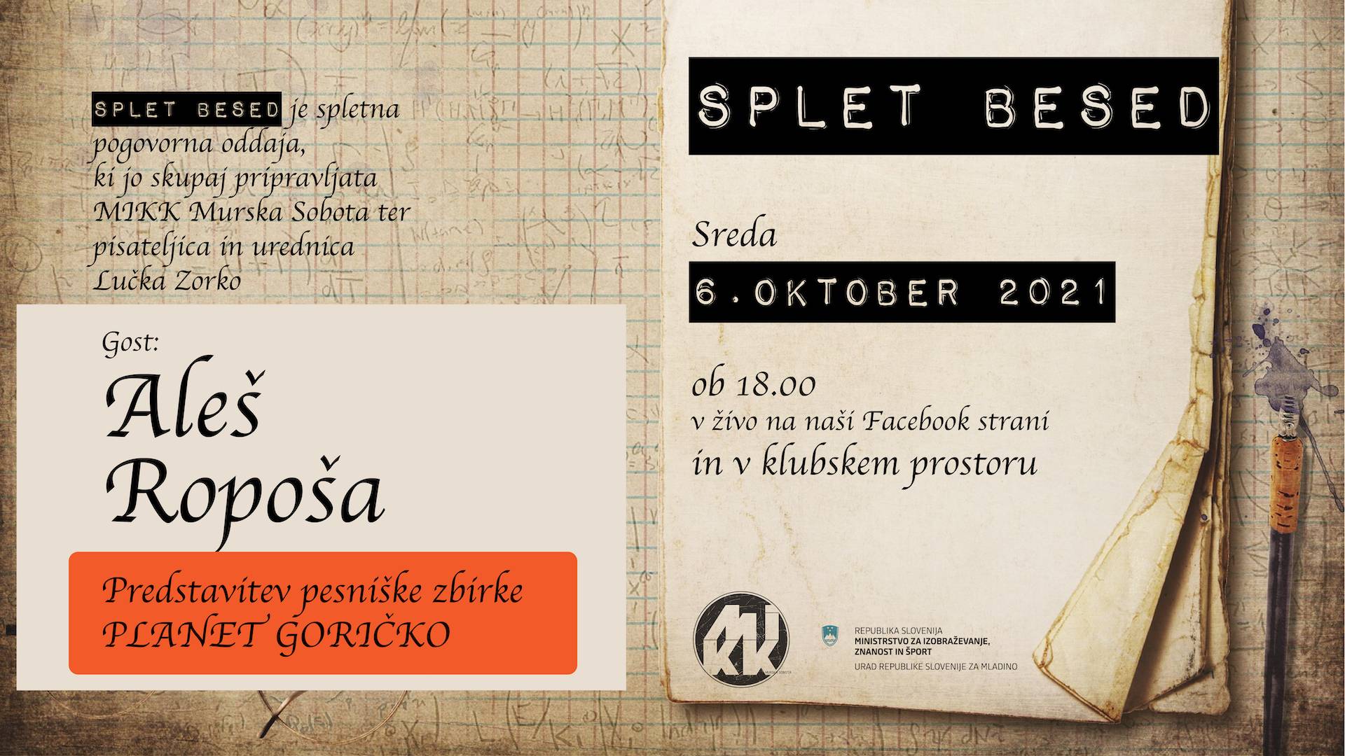 Splet besed: Aleš Ropoša (predstavitev pesniške zbirke ”Planet Goričko”)