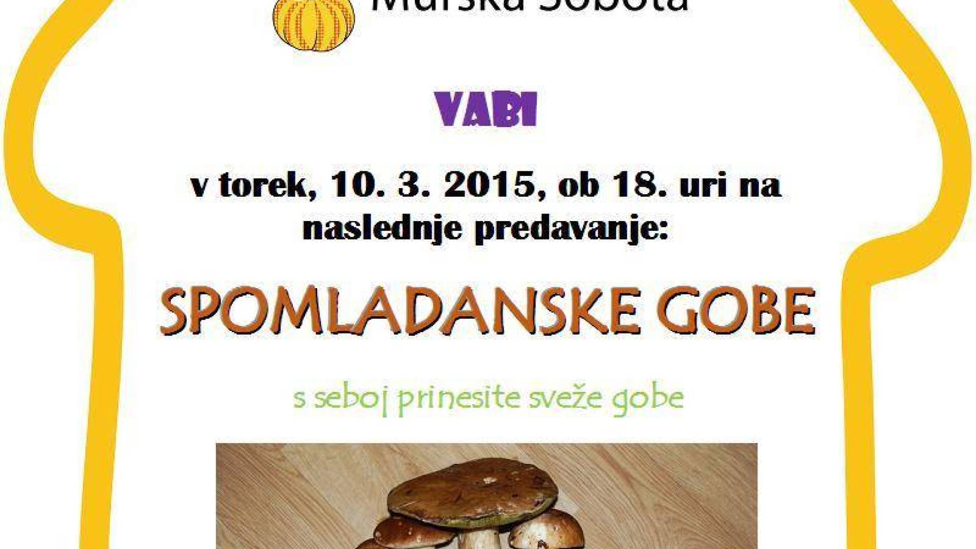 SPOMLADANSKE GOBE Hiša Sadeži družbe MS | 6. marec 2015 17:33 v Termin Torek, 10. marec 2015 18:00 Lokacija Hiša Sadeži družbe v M. Soboti - ul. Štefana Kovača 20 S seboj prinesite sveže gobe.