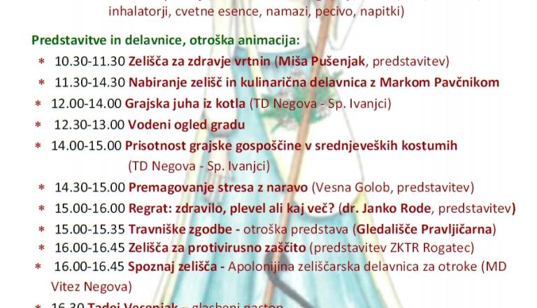 Grad NegovaV nedeljo, 6. junija 2021, bo na gradu Negova tradicionalni zeliščarski dan NEGOVAnJE.