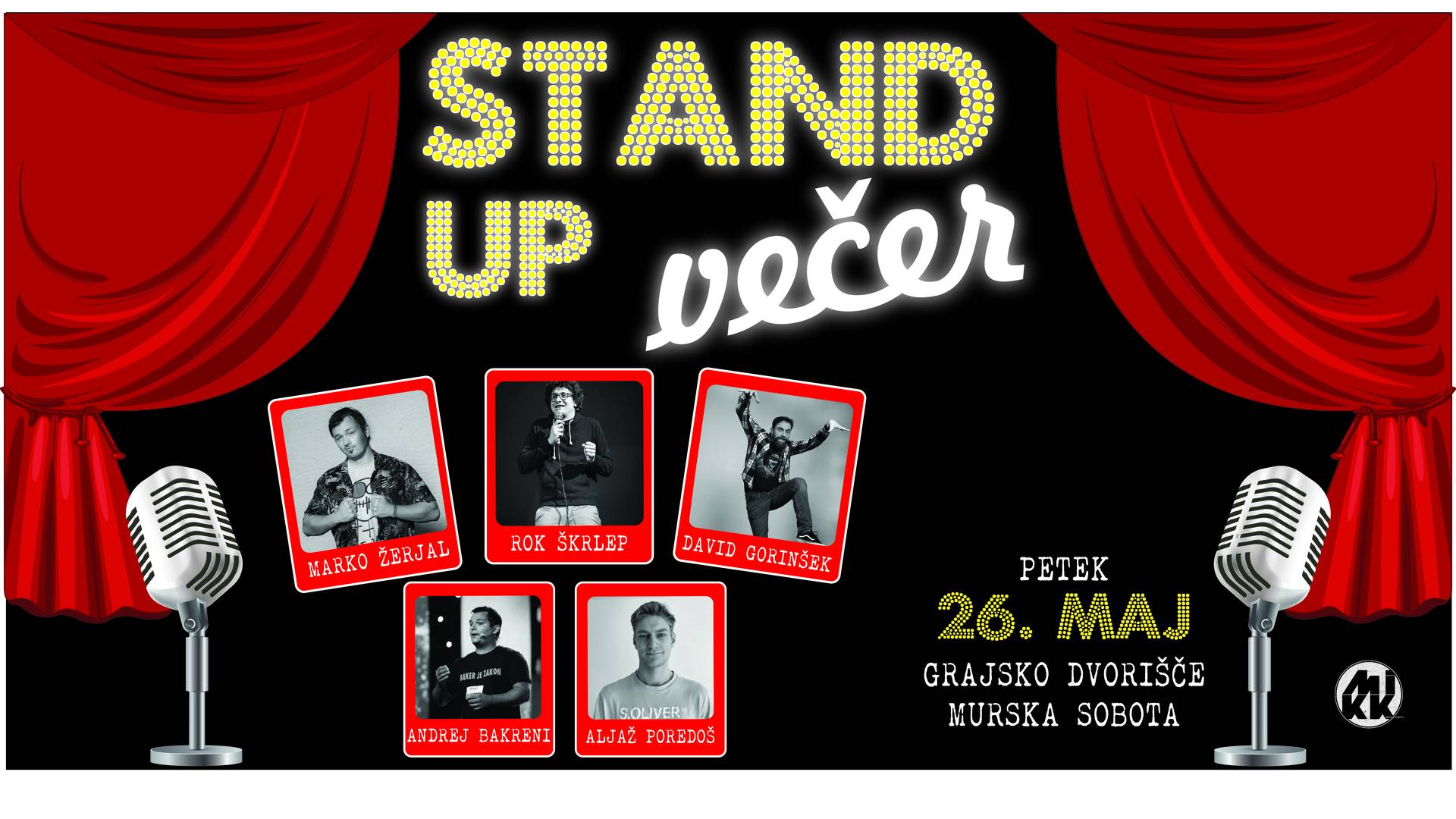 V petek, 26. maja prihaja največji stand up dogodek letošnjega leta v Mursko Soboto, kjer Vas bomo v uro in pol dolgem večeru na prostem na grahskem dvorišču nasmejali: Aljaž Poredoš, Andrej Bajič Bakreni, David Gorinšek, Rok Škrlep kot glavni pa bo večer zaključil Marko Žerjal.