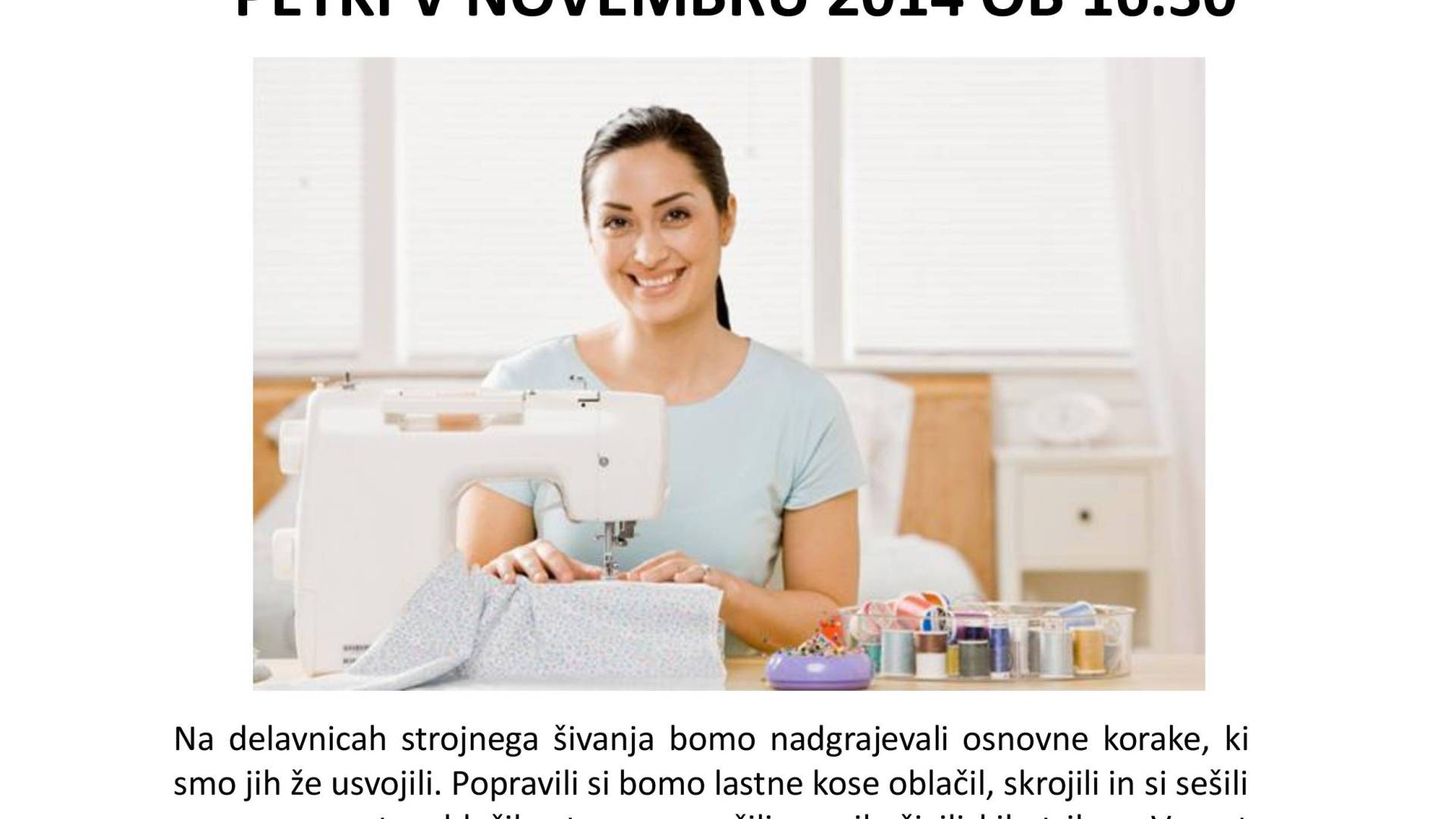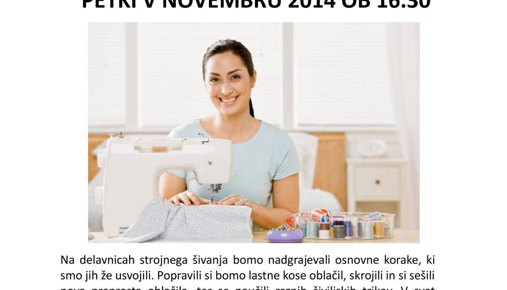 Sofija medgeneracijska hiša Lendava Glavna ulica 48 9220 LendavaNadaljevalni tečaj strojnega šivanja z Majo Guld. Delavnica je brezplačna, zaželjeni so prispevki za delovanje hiše.