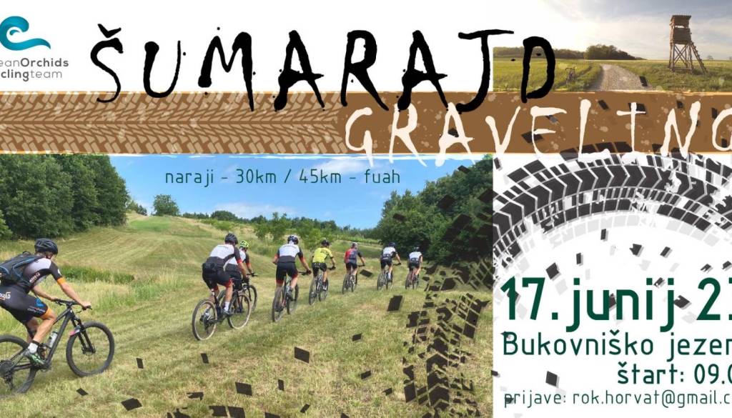 Bukovniško jezero - DobrovnikŠumarajd graveling je rekreativno kolesarsko druženje po gozdovih okoli Bukovniškega jezera. Vožnja bo potekala po GPS navigaciji in ne bo posebej označena na progi. Natančna trasa in ostale podrobnosti vam bodo posredovane en teden pred samo vožnjo. Povabite še prijatelja.