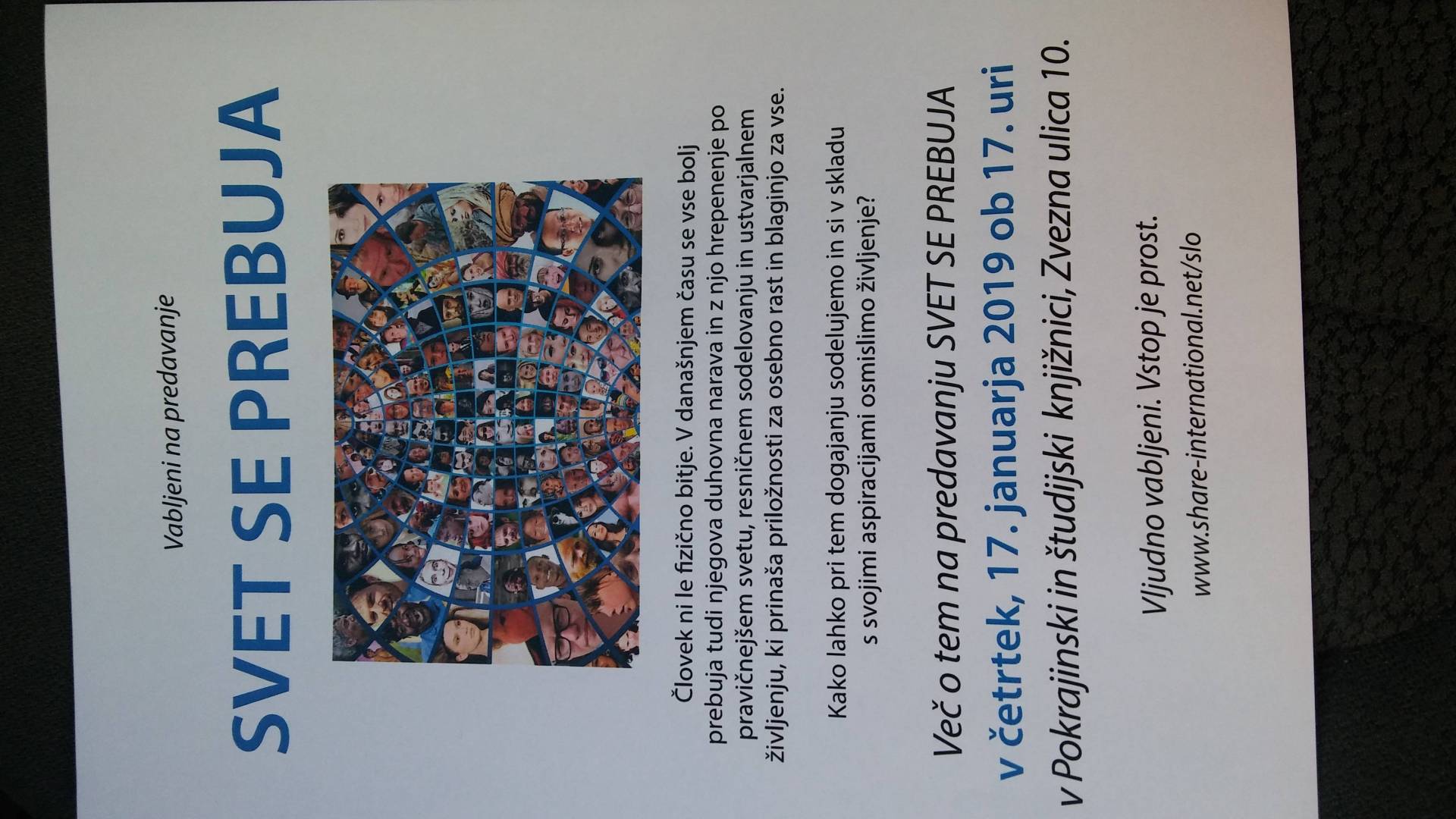ponovno vas vabimo, da se udležite druženja ob predavaju z naslovom "Svet se prebuja". Medse smo povabili Marijo Kure, ki nam bo povedala nekaj besed o mojstrih modrosti in njihovem delovanju v svetu.