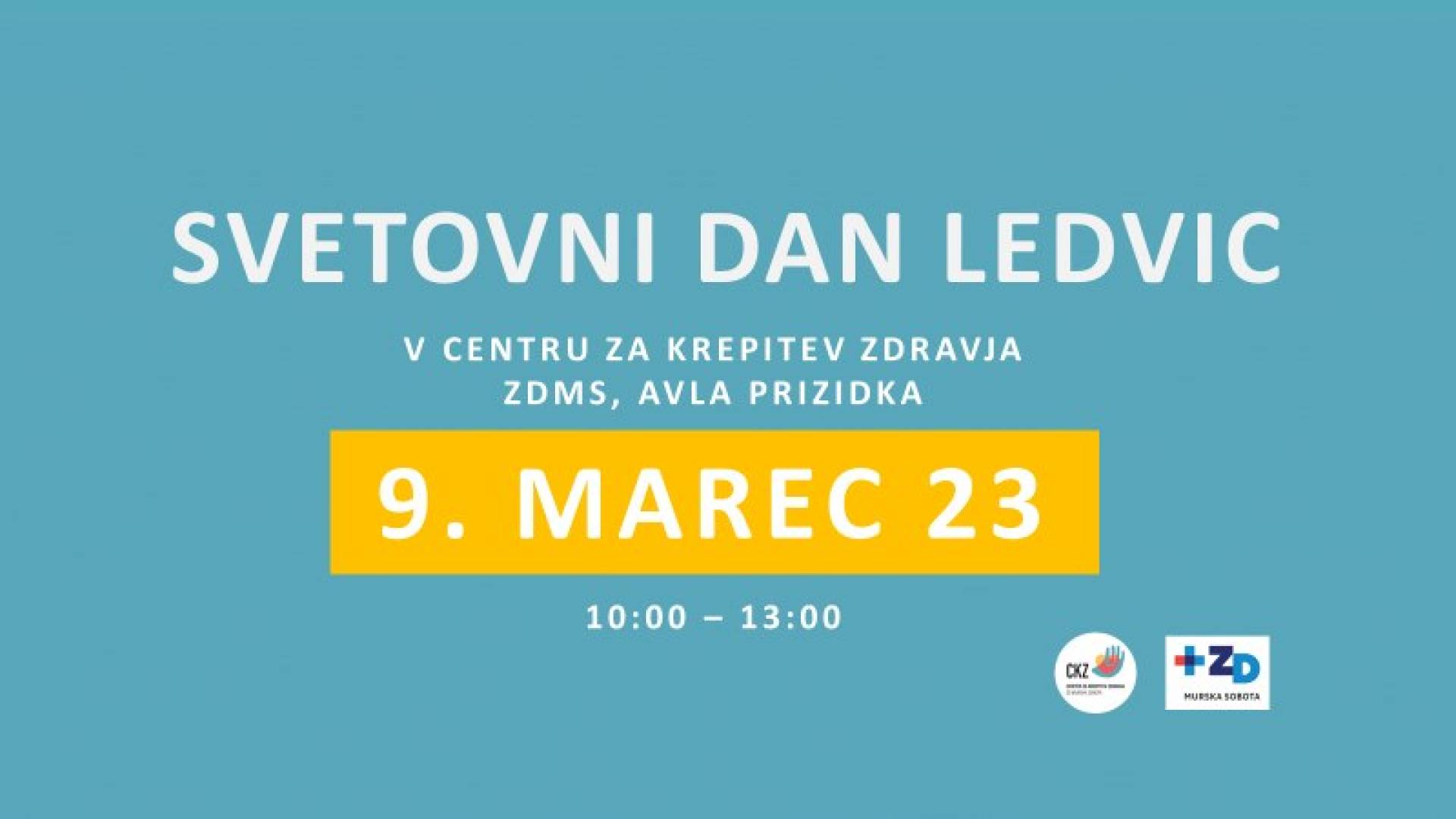 Zdravstveni dom Murska SobotaOb SVETOVNEM DNEVU LEDVIC, 9. marca 2023 med 10. in 13. uro, vas vabimo v Zdravstveni dom Murska Sobota (avla prizidka, vhod mimo otroškega dispanzerja), kjer boste na enem mestu pridobili vse pomembne informacije o zdravju in delovanju ledvic. Izvajali bomo tudi meritve krvnega tlaka.