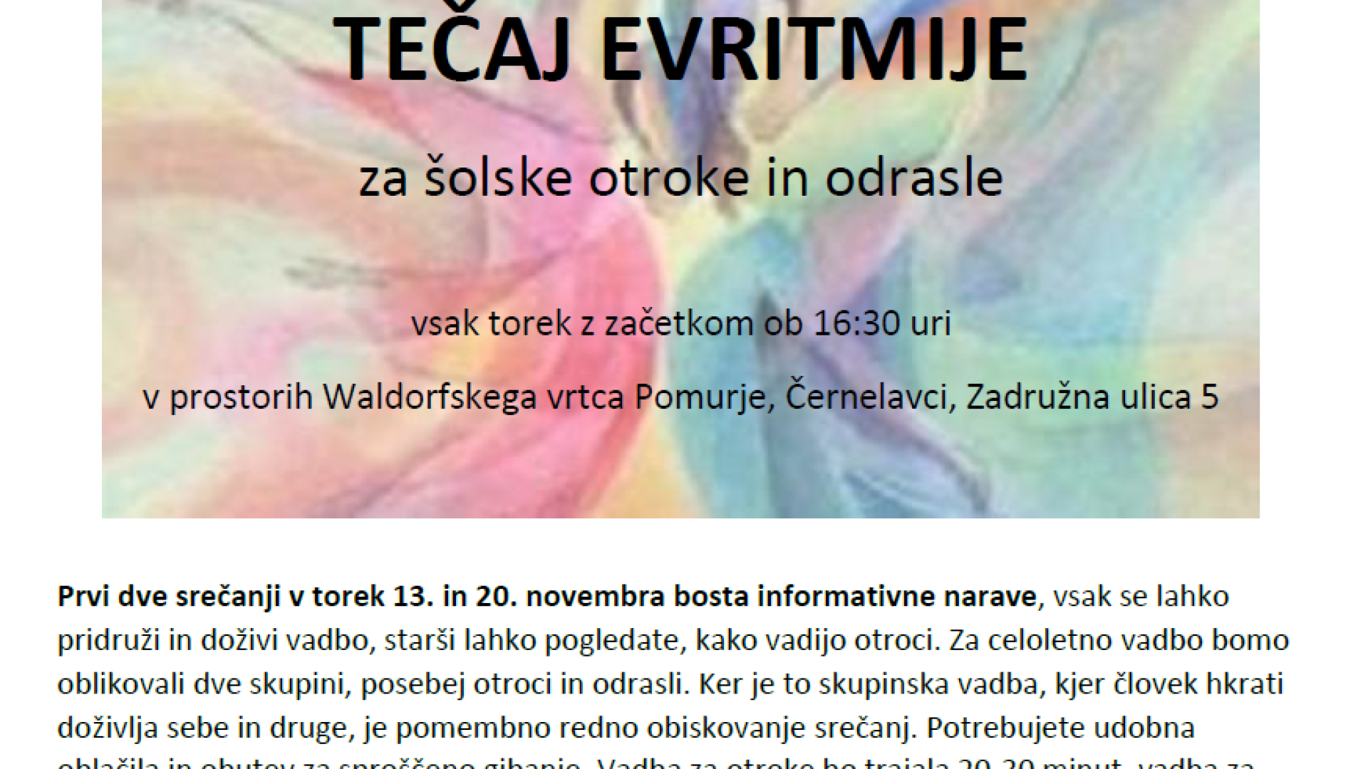 Waldorfski vrtec Pomurje, ČernelavciTEČAJ EVRITMIJE