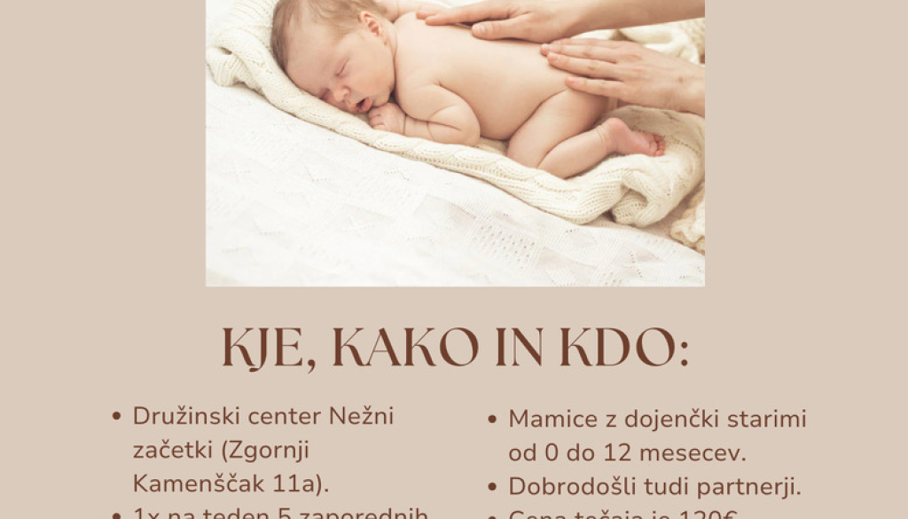 Vabljeni na Tečaj masaže dojenčka, ki bo potekal v marcu in aprilu v Družinskem centru Nežni začetki.
