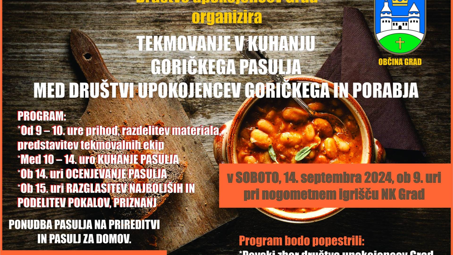 TEKMOVANJE V KUHANJU GORIČKEGA PASULJA MED DRUŠTVI UPOKOJENCEV GORIČKEGA IN PORABJA.