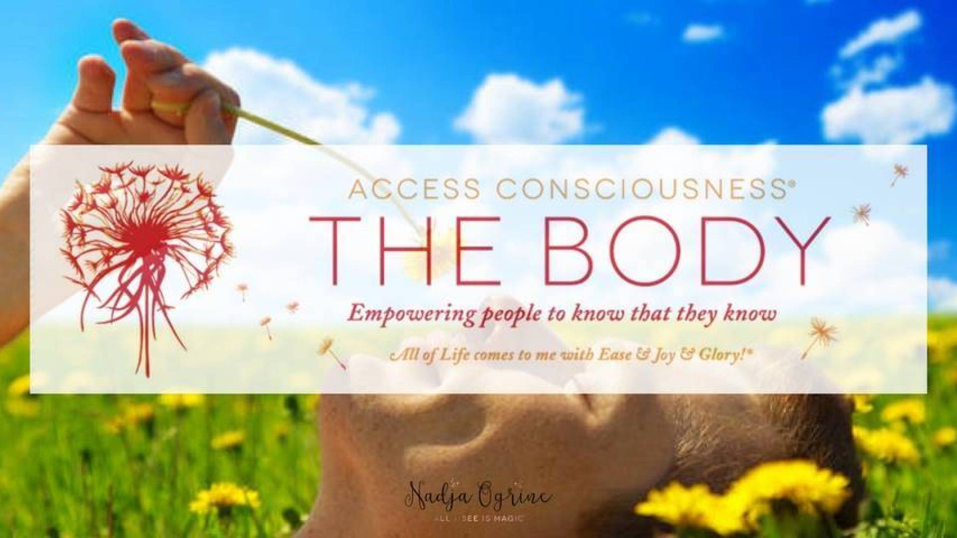 Delavnico vodi Nadja Ogrinc, ki je certificirana voditeljica tematskih delavnic z accessovimi orodji, Access Bars delavnic ter delavnic vseh ostalih telesnih procesov Access Consciousnessa. Že več kot štiri leta uporablja orodja in procese Access Consciousnessa za kreiranje in raziskovanje življenja. Opravljenih ima več različnih delavnic Access Consciousness, med njimi tudi Temeljni tečaj, Choice of Possibilities, Energetic synthesis of being, Body class, SOP in več.