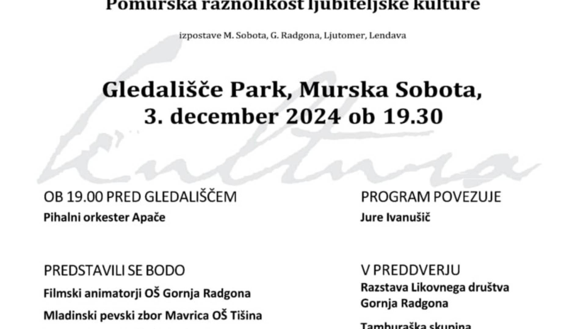 Tu smo! Matic Vlaj | 29. november 2024 11:45 v Ostalo Termin Torek, 3. december 2024 19:30 Lokacija Gledališče Park M. Sobota Vabljeni!