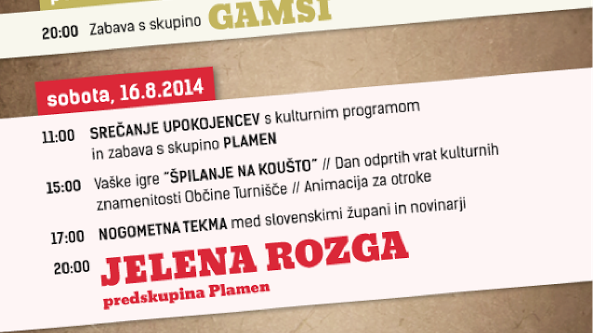 Parkirišče tovarne Planika v TurniščuKoušta vabi na "Turizem na Koušto 2014", ki bo od 15. do 17.8. 2014 na parkirišču tovarne Planika v Turnišče.