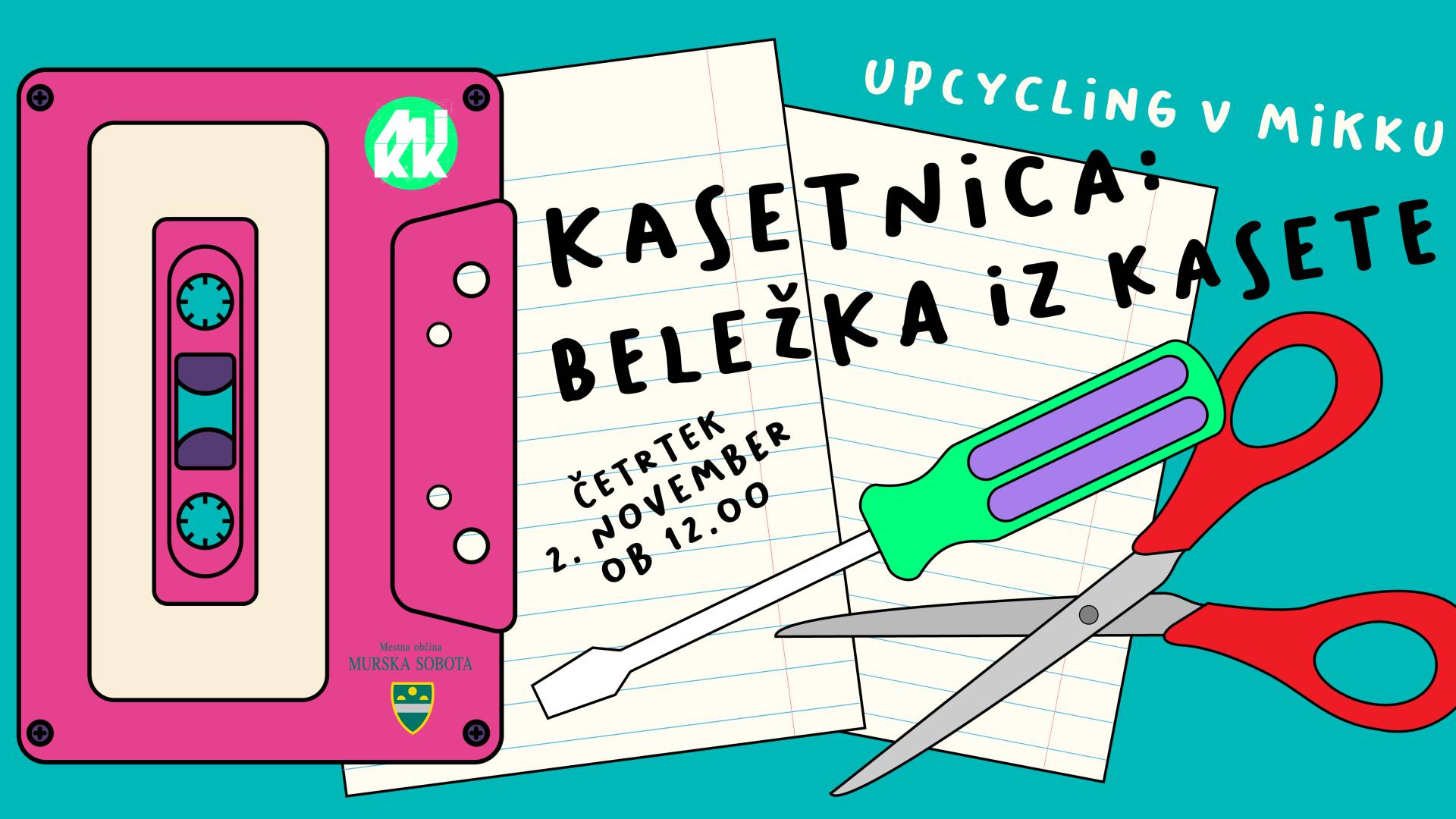 Na delavnici bomo v maniri ponovne uporabe odsluženih predmetov iz kaset izdelali platnice mini beležnice ter med njih vpeli odpadni papir različnih barv. Kasetne platnice bomo poljubno poslikali ter okrasili.
