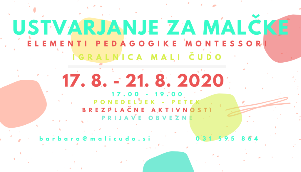Sklop brezplačnih dvournih delavnic 'Ustvarjanje za malčke' je namenjen otrokom med 3 in 6 letom starosti. Program se bo izvajal v igralnici Mali ČuDo, izjemoma zunaj v naravi v mestnem parku.