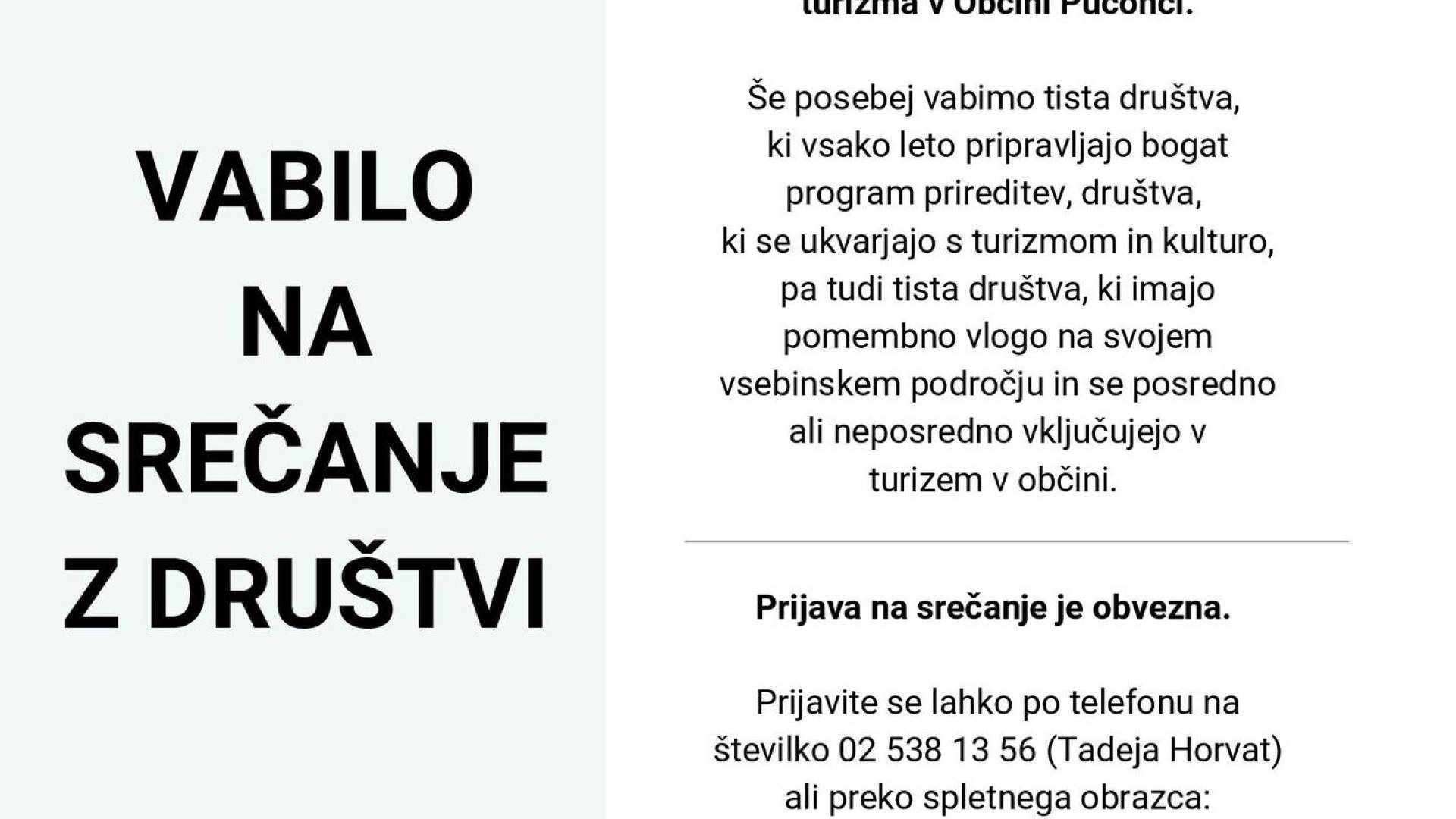 Vabimo vsa društva v občini Puconci, da se udeležijo srečanja!