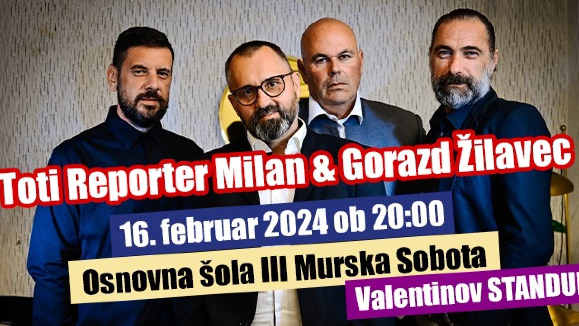 Dragi smeholjubci. Bliža se VALENTINOVO in letos imamo za vas nekaj posebnega! Pridružite se nam na večeru polnem smeha in zabave, kjer bodo oder zavzeli TOTI REPORTER MILAN in GORAZD ŽILAVEC!