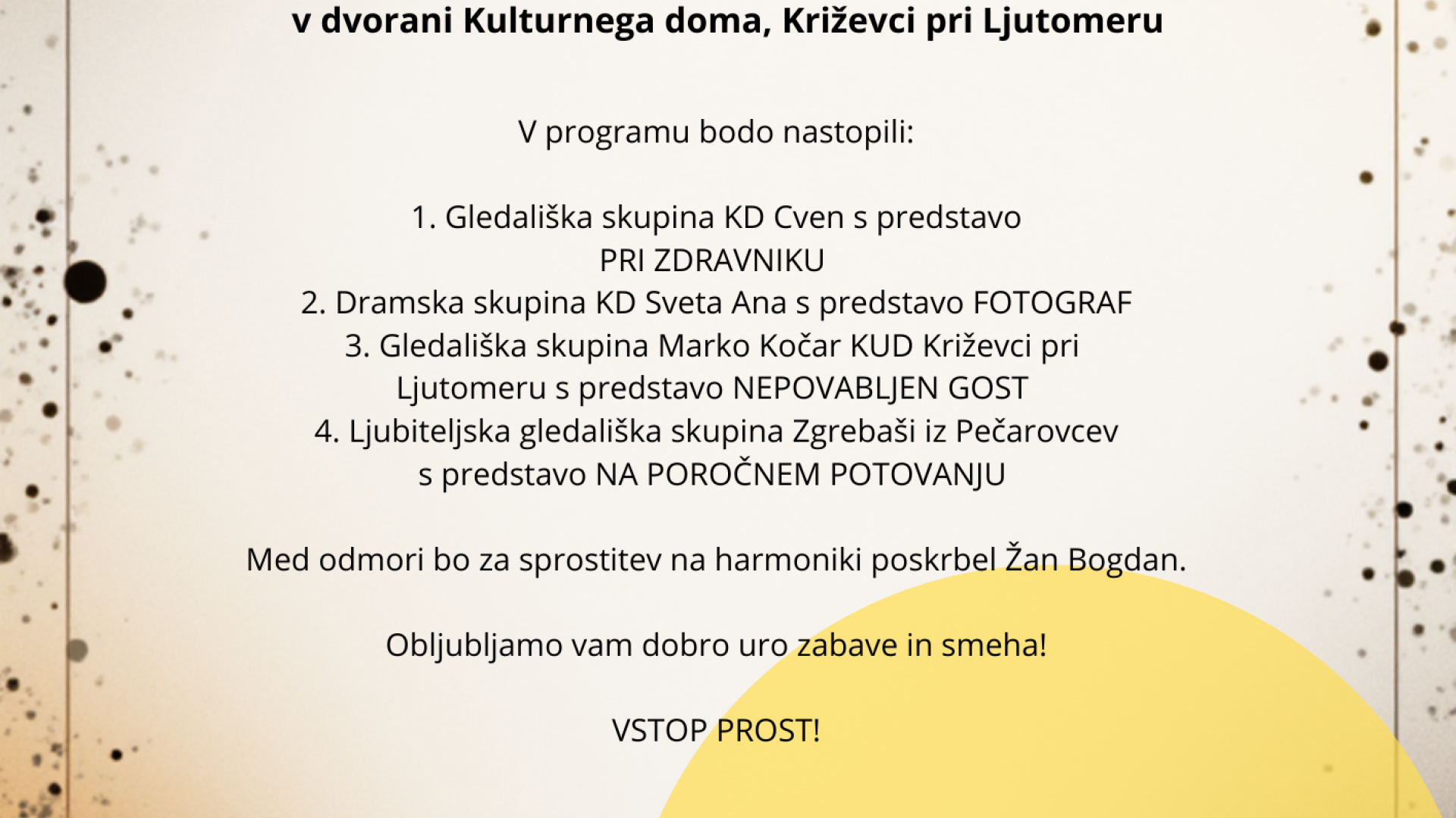Kulturni dom Križevci pri LjutomeruVABIMO VAS NA VEČER SKEČEV