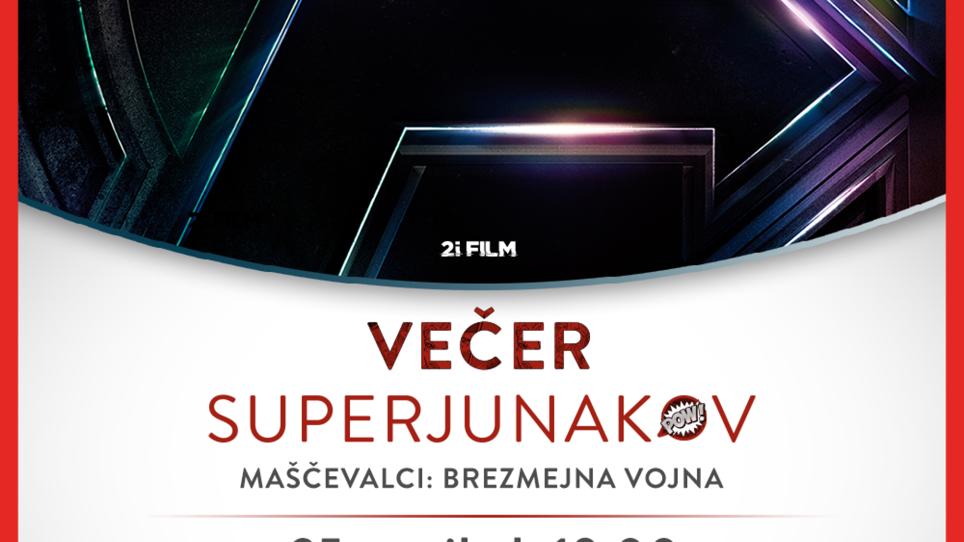 V kinu Cineplexx (Maximus) v Murski SobotiNajnovejši Marvelov spektakel prihaja konec meseca na velika platna. v sredo, 25. aprila ob 19.00 bo potekal Večer superjunakov v vseh Cineplexx kinih. Vstopnice so na voljo na https://bit.ly/2qmYo7z