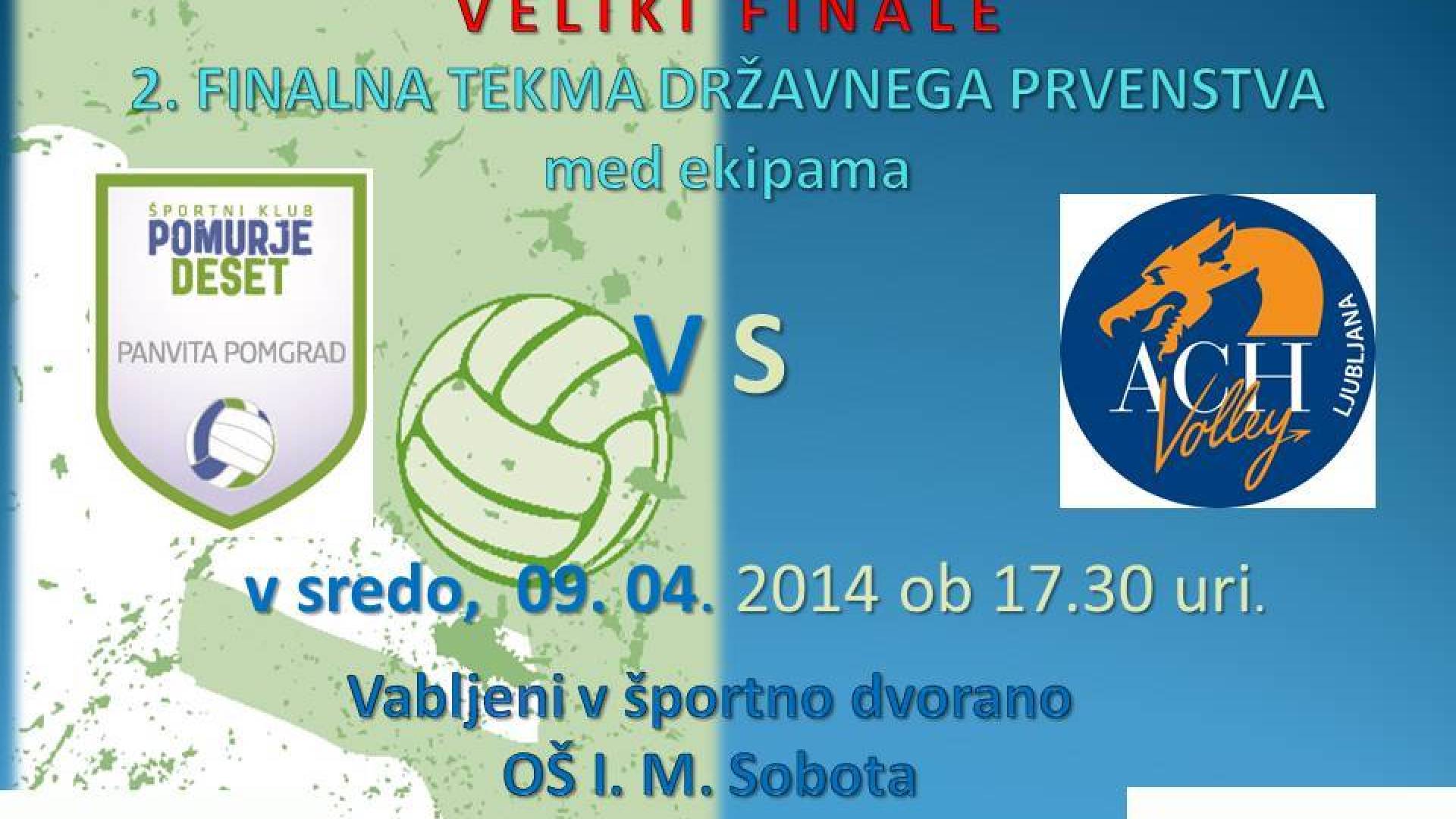 Športna dvorana OŠ I. M. SobotaSedaj gre zares, sedaj gre za zlato medaljo! Panvita Pomgrad je z uvrstitvijo v finale dosegla izjemen uspeh, a proti ACH-ju se ne predajajo. S pomočjo peklenskega vzdušja v domači dvorani bi lahko presenetili tudi Ljubljančane!