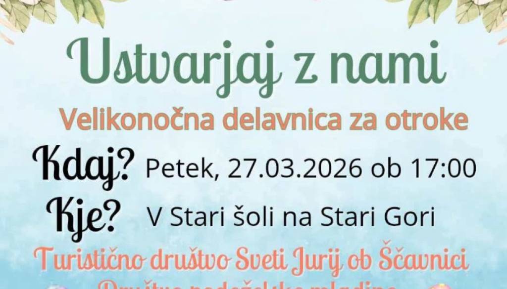 Otroci bodo lahko ustvarjali velikonočne izdelke, barvali, ustvarjali in se prepustili domišljiji v prijetni družbi.