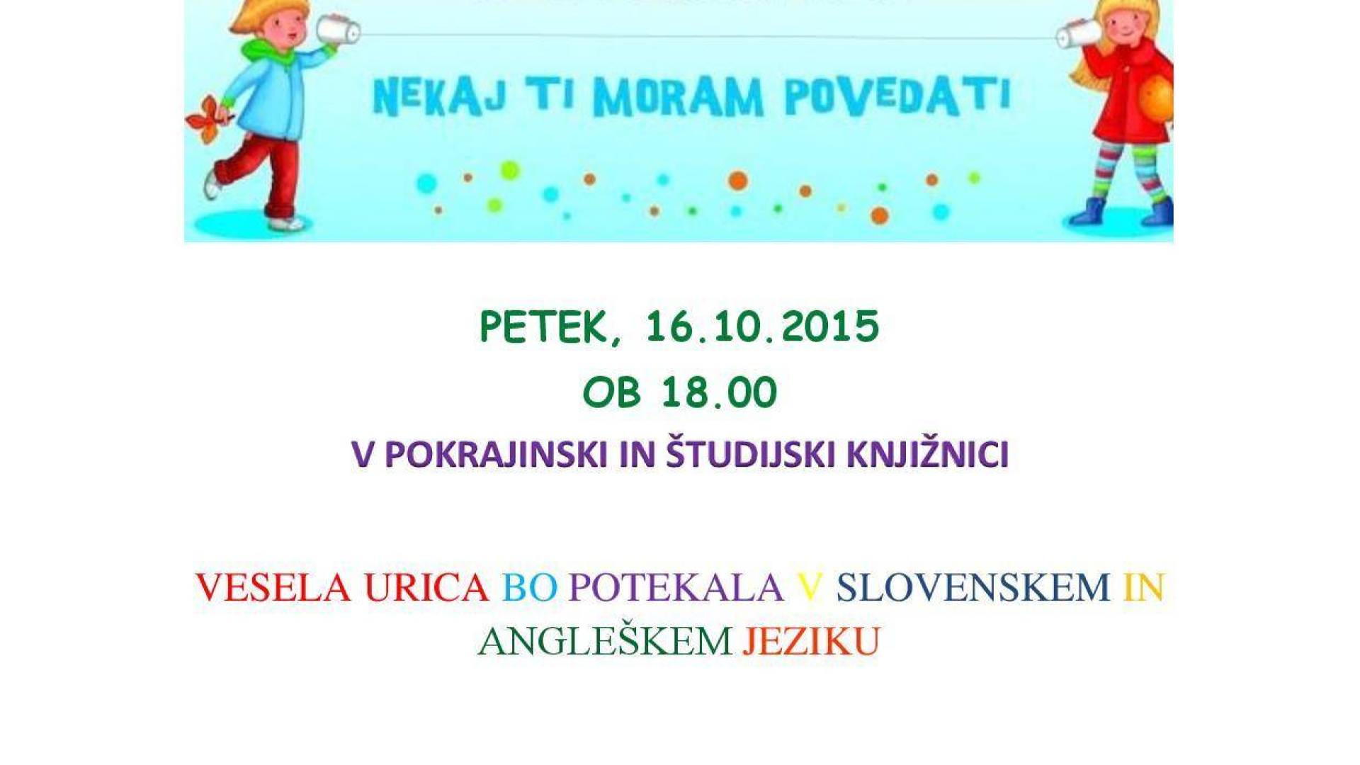 Pokrajinska in študijska knjižnica M. SobotaOtroke od 2. leta starosti vabimo na VESELO URICO "NEKAJ TI MORAM POVEDATI."