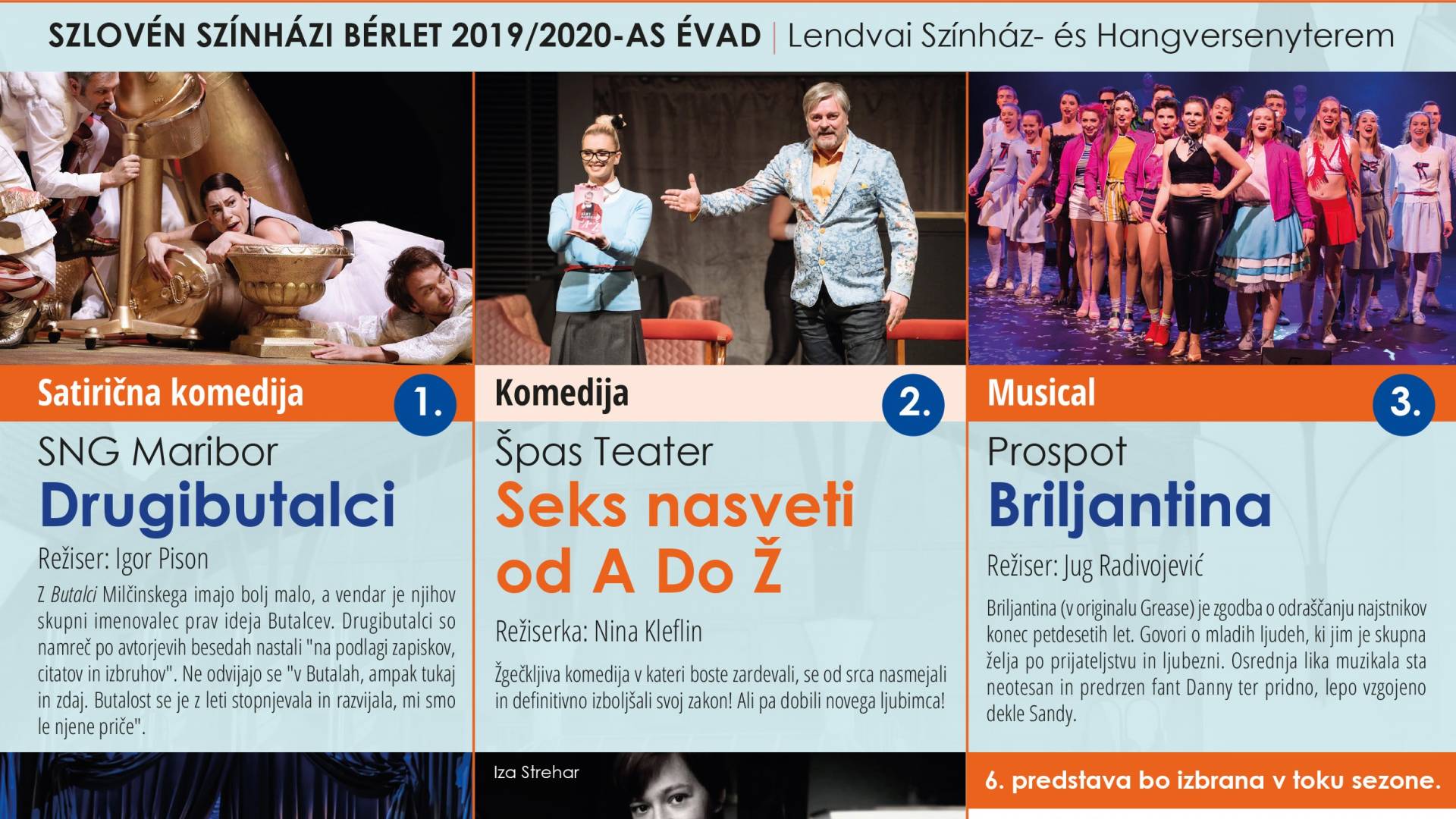 Javni zavod Knjižnica – Kulturni center Lendava – Lendvai Könyvtár és Kulturális Központ ponuja vsem ljubiteljem gledališča abonmajski program za odrasle za sezono 2019/2020.