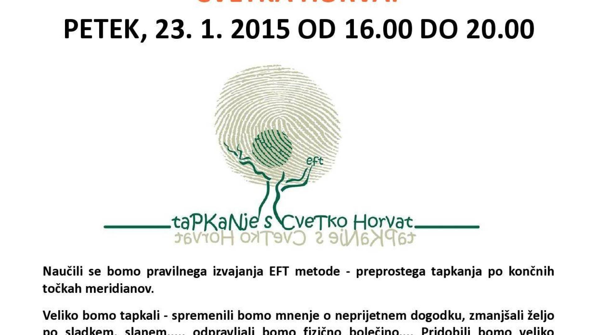 Začetna delavnica - uporaba EFT metode (tapkanje) s Cvetko Horvat