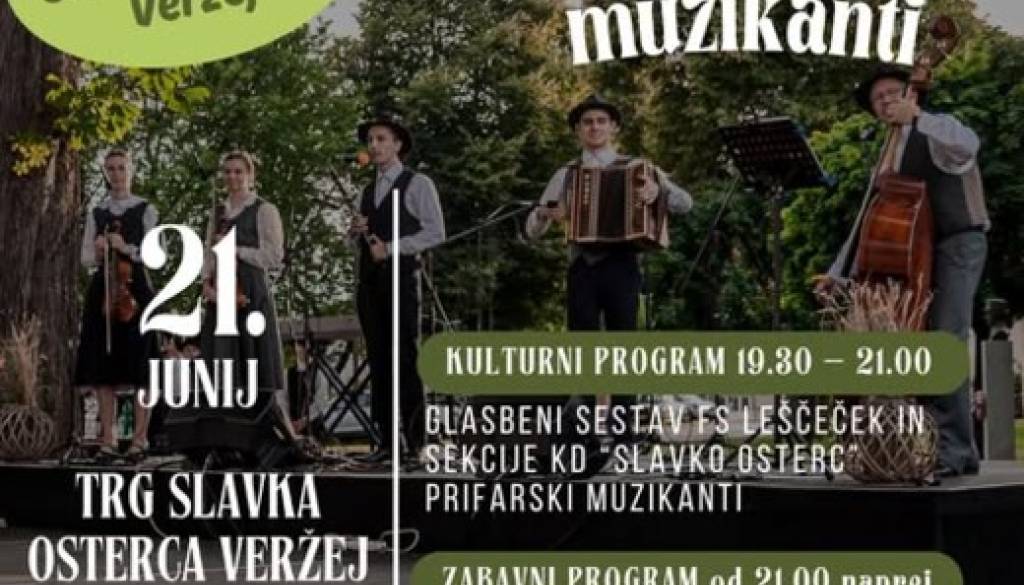 Zaigrajmo in zapojmo pod kostanji s Prifarskimi muzikanti gregor1 | 22. maj 2025 12:27 v Glasba Termin Sobota, 21. junij 2025 19:30 Lokacija Trg Slavka Osterca Veržej Zaigrajmo in zapojmo pod kostanji s Prifarskimi muzikanti