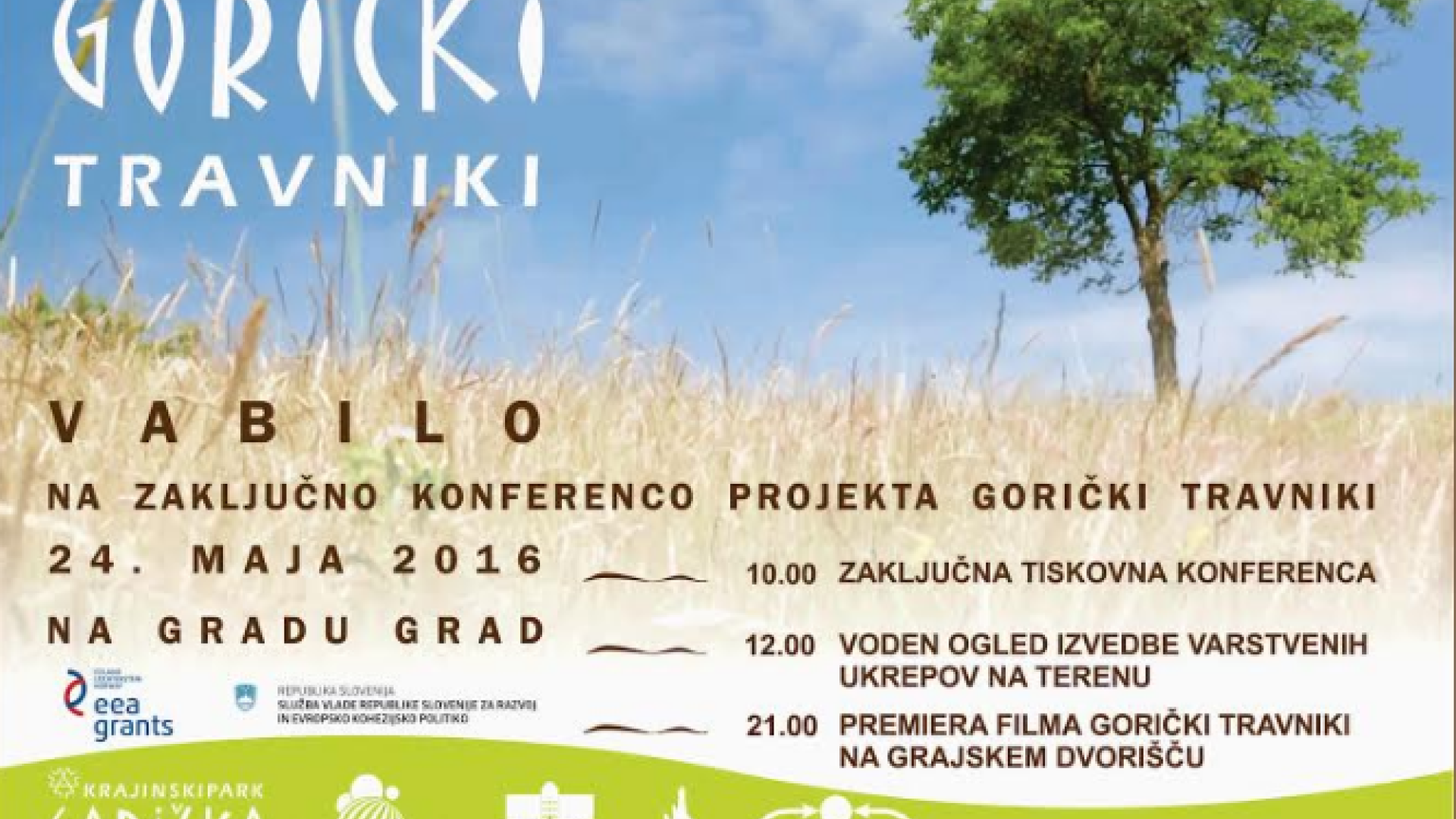 V imenu nosilca projekta Javnega zavoda Krajinski park Goričko vas vljudno vabimo na zaključno konferenco projekta Učinkovito upravljanje z ekstenzivnimi travniki na območju Natura 2000 Goričko - Gorički travniki, ki bo potekala ob Evropskem dnevu parkov v torek, 24. maja 2016 na gradu Grad na Goričkem.