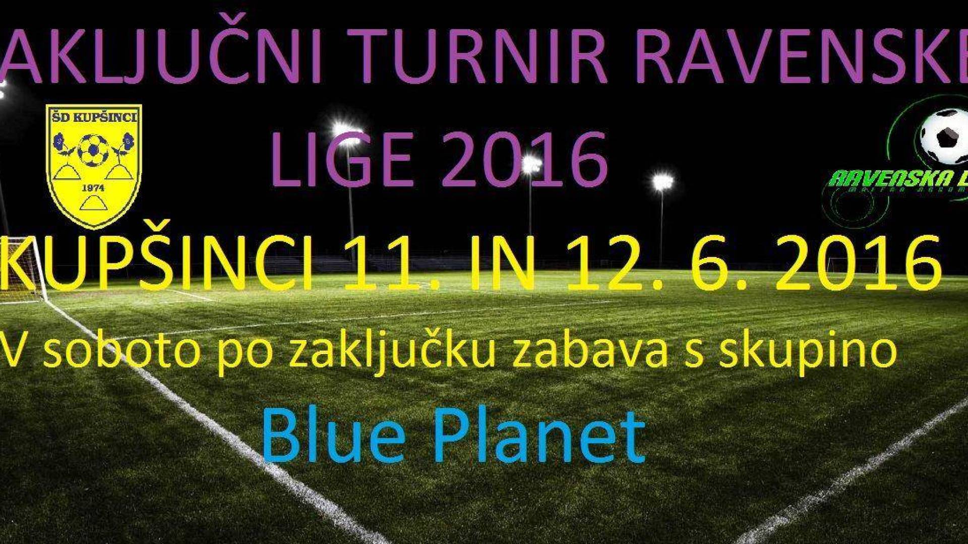 ŠRC KupšinciVljudno vabljeni, da obiščete dvodnevni zaključni turnir Ravenske lige malega nogometa za člane. Turnir se bo začel v soboto 11. 6. 2016 ob 16.00 uri in nadaljeval v nedeljo 12. 6. 2016 skozi celotni dan. V soboto po zaključku ob 20.00 zabava s skupino Blue Planet.