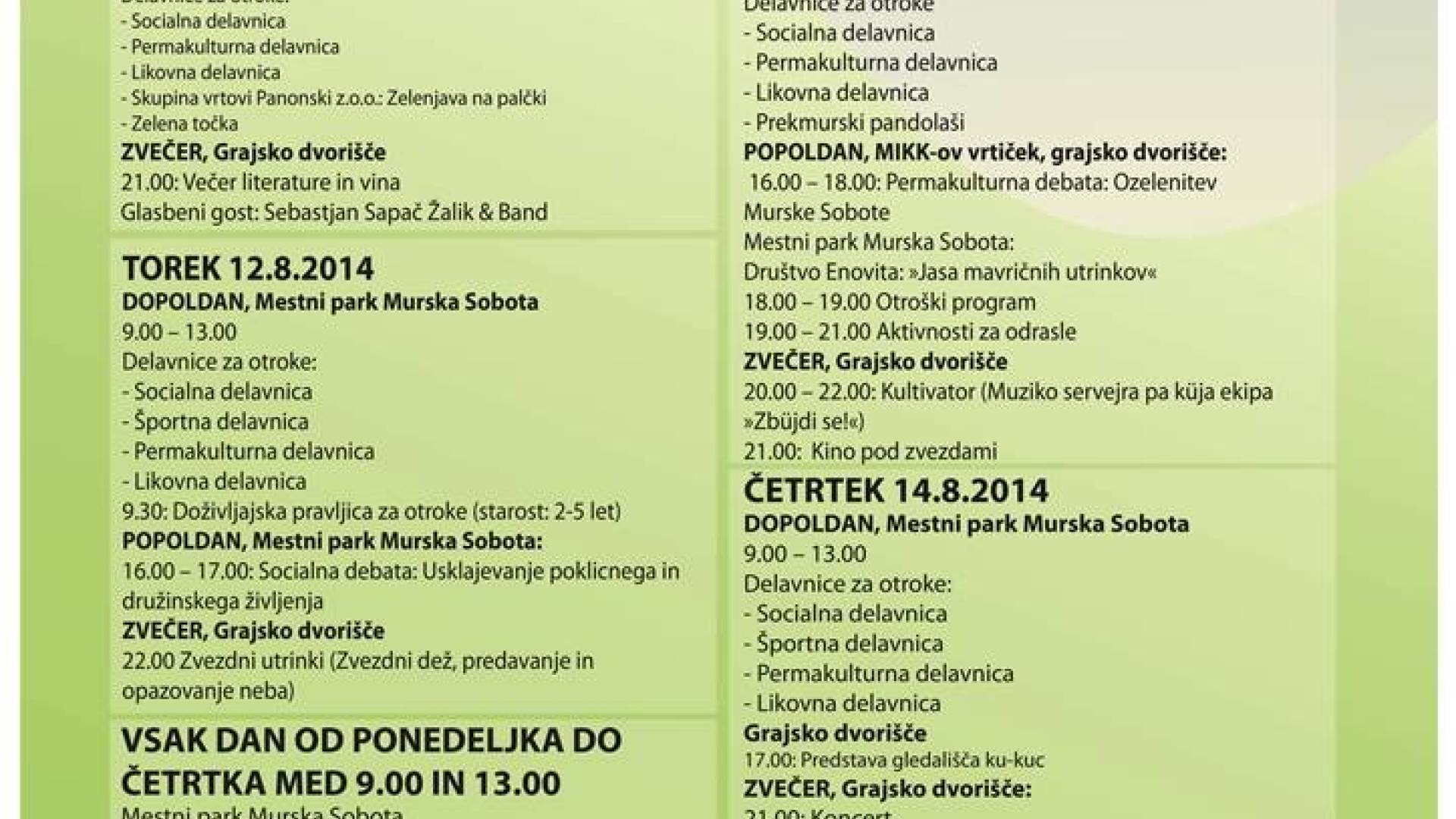 Mestni park Murska SobotaPETEK 15.8. 2014