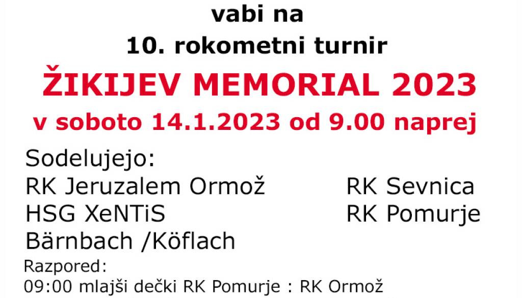 Športna dvorana OŠ III Murska SobotaŽikijev memorial 2023