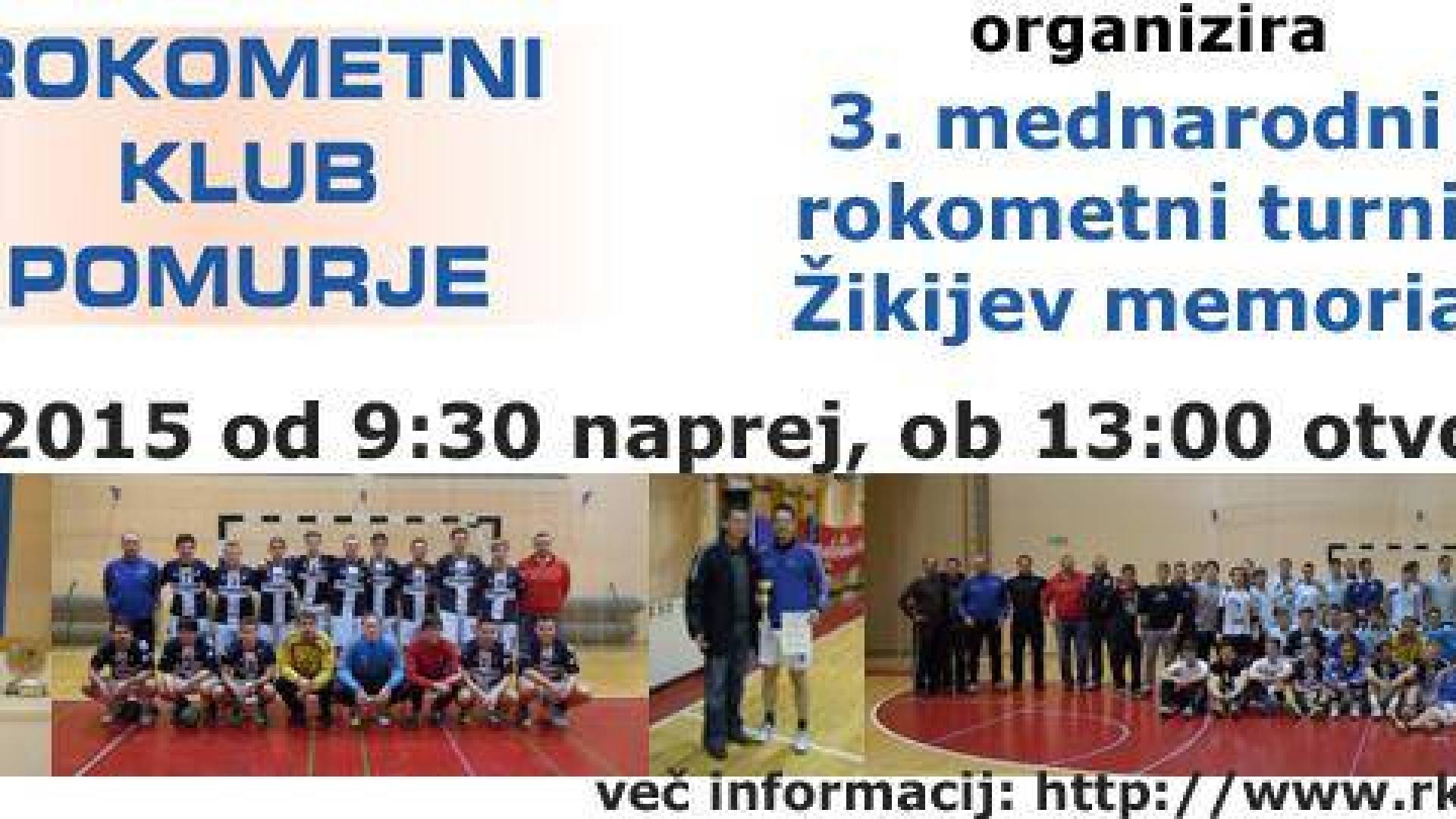 Športna dvorana OŠ III Murska SobotaRokometni klub Pomurje organizira 3. mednarodni rokometni turnir – Žikijev memorial 2015. Nastopile bodo članske ekipe iz Hrvaške, Avstrije in Slovenije in vse mlajše selekcije rokometnega kluba Pomurje. Skupno bo odigranih 7 tekem.