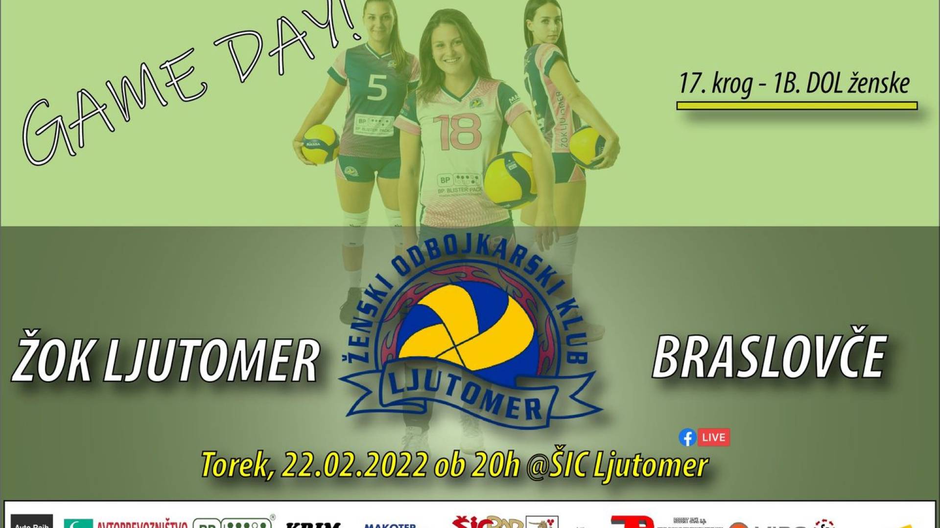 ŠIC LJUTOMERV torek, 22.02.2022 ŽOK LJUTOMER čaka zadnja domača tekma zaostalega kroga! Prihaja ekipa ŽOK Braslovče!