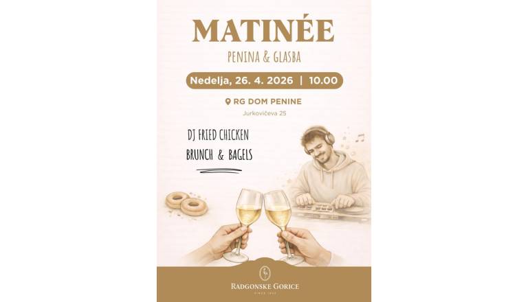 Vabljeni na sproščeno nedeljsko druženje v Domu penine, kjer se skozi ves dan prepletajo penina, glasba, dobra hrana in prijetno vzdušje. MATINÉE prinaša ...