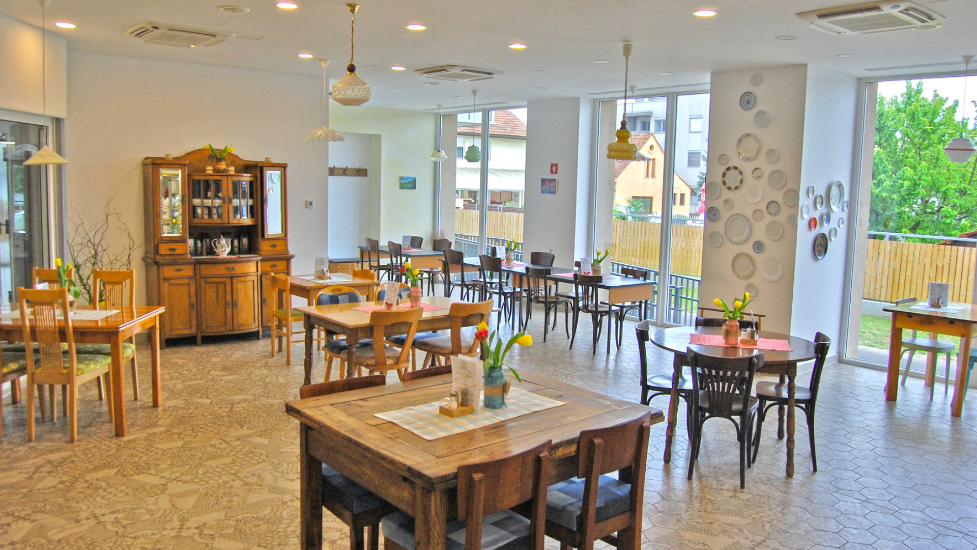 Restavraciji Mensana vsak dan nudimo okusne domače jedi, pripravljene iz surovin lokalnih pridelovalcev. Poleg malic so vsak dan na voljo Francova župa, ocvrti piščanec, solatni krožniki, retaši, domače sladice in ostale jedi po naročilu. Sprejemamo rezervacije za skupine, z veseljem vam hrano dostavimo tudi na dom. Naša restavracija s teraso je v celoti opremljena s predmeti iz ponovne uporabe, kar ji daje poseben pridih domačnosti. Prijazno osebje vas pričakuje vsak delovnik med 8.00 in 15.00. Za rezervacije in naročila smo na voljo na T: 02/521-42-30.