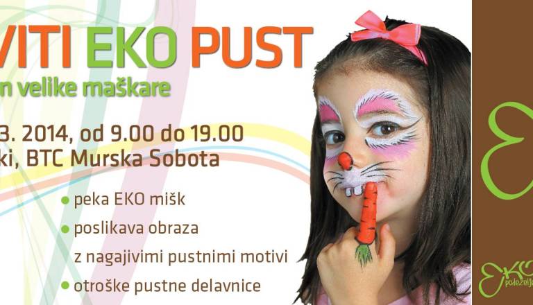 Barviti EKO pust v Zeleni točki, BTC Murska Sobota v sobota, 1. 3. 2014, od 9:00 do 19:00 ure Pestro pustno dogajanje v trgovini Zelena točka: - peka eko mišk - ...
