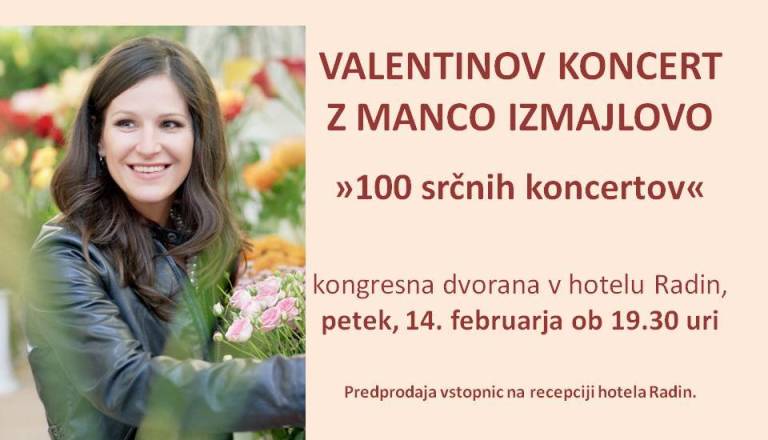 Vabljeni na koncert z Manco IZMAJLOVO, ki bo v petek 14.2.2014 ob 19.30 uri v kongresni dvorani hotela Radin v Zdravilišču Radenci. predprodaja vstopnic na ...