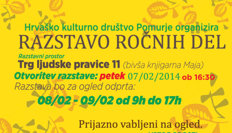 Hrvaško kulturno društvo Pomurje organizira RAZSTAVO ROČNIH DEL