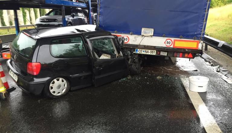 Avto trčil v stoječi tovornjak na avtocesti