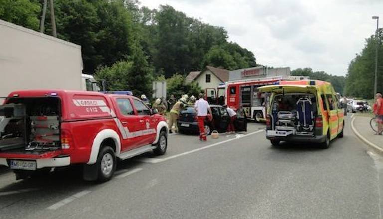 V prometni nesreči poškodovani dve osebi, eno iskali policisti in gasilci