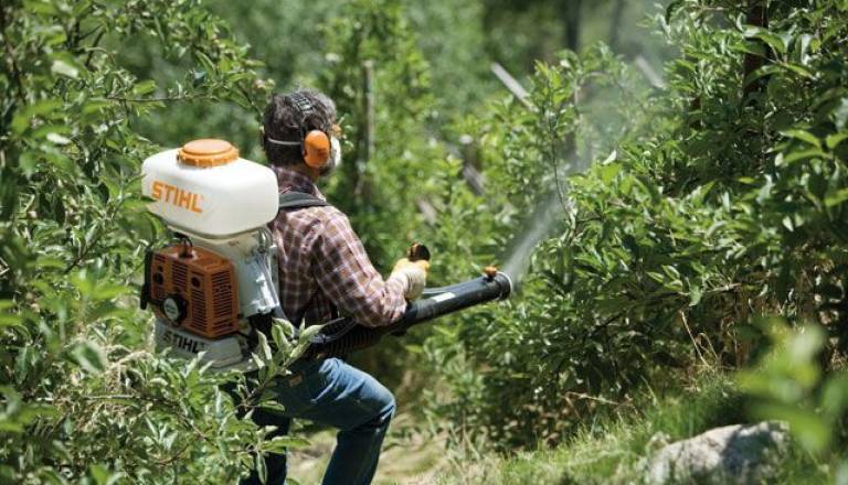 Iz vikenda odkorakal s škropilnico na hrbtu