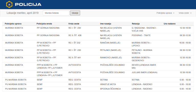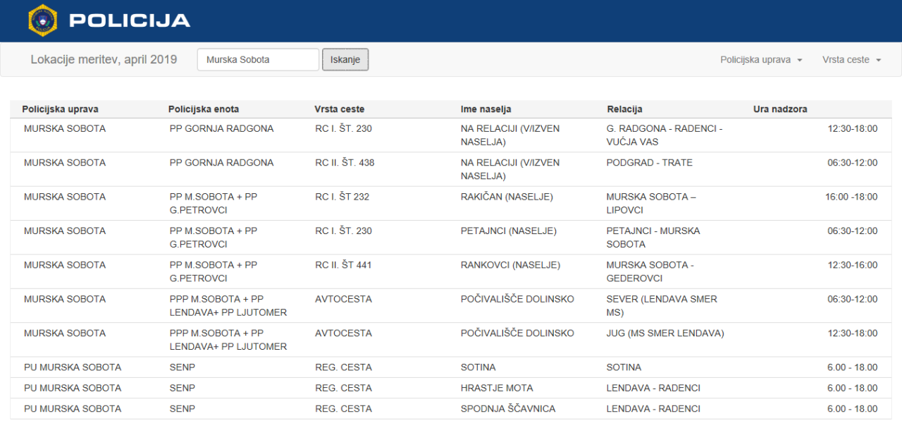 Maraton nadzora hitrosti bo izvajalo okoli 200 policistov, v okviru svojega rednega dela pa se bodo v nadzor nad prehitrimi vozniki vključevali tudi drugi policisti. Policisti bodo hitrost merili od 6. do 18. ure, v Pomurju pa bodo na vas prežali na naslednjih lokacijah: