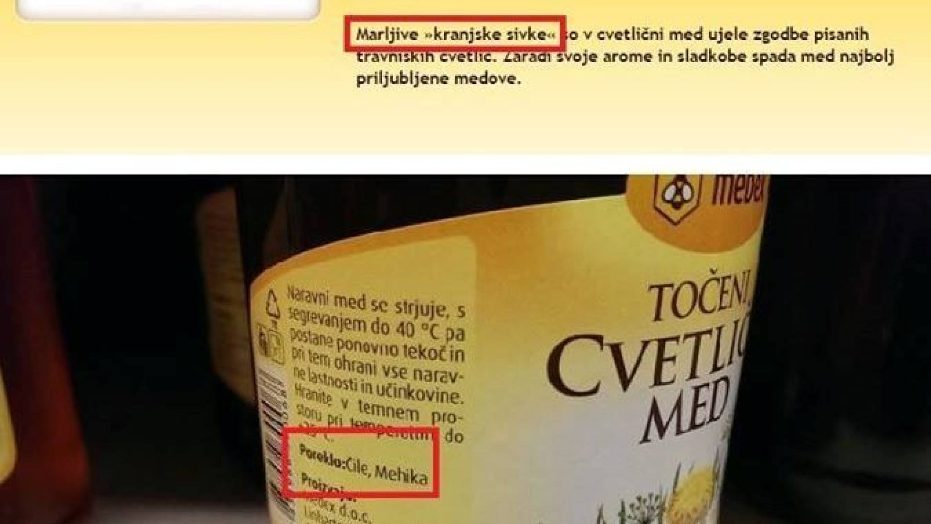 Cvetlični med v katerega so ujete zgodbe pisanih travniških cvetlic in s svojo aromo in sladkobo spada med najbolj priljubljene medove, letos ni produkt dela kranjske čebelice in slovenskih čebelarjev, tako bo potrebno v bodoče biti zelo previden pri nakupu izdelkov iz medu in dobro prebrati deklaracijo in izvor dežele.