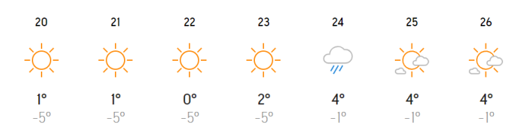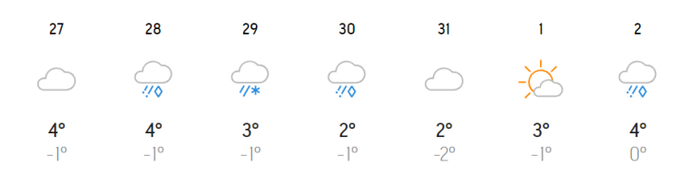 Najvišje dnevne temperature naj bi znašale štiri stopinje Celzija, najnižje nočne pa minus eno stopinjo Celzija.