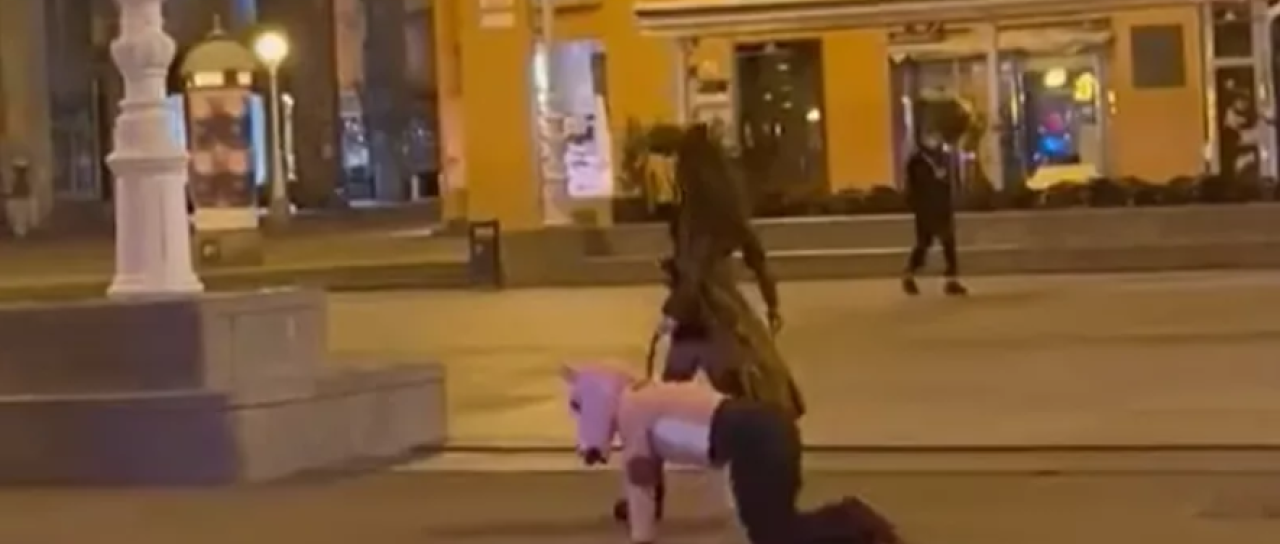 Gre za videoposnetek, ki je bil objavljen na TikToku, posnet pa je bil na Cvjetnem trgu v Zagrebu. In sicer prikazuje nenavadni prizor, kako je moški žensko sprehajal kar na povodcu in v nenavadni maski konja.